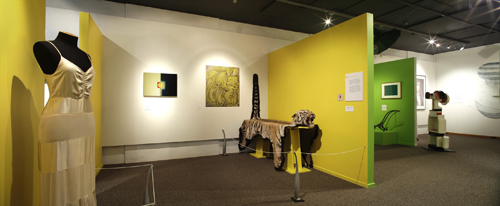 Also on was “Colour”. This exhibition brings together artworks and objects from the collections of the Sarjeant Gallery and the Whanganui Regional Museum and is on display in both venues.  By mixing up artworks and objects – from the thickly painted surface of an oil painting, to the plush fur of a stuffed animal – this exhibition looks at what each colour means to us, how it shapes our response to the environment, to each other and to the things that surround us in our everyday lives.  The exhibition includes photography, printmaking, painting and sculpture and a diverse range of objects including an x-ray machine, an impressive pair of peacocks and a tiger skin rug! Co-curated by Greg Donson and Damian Skinner.