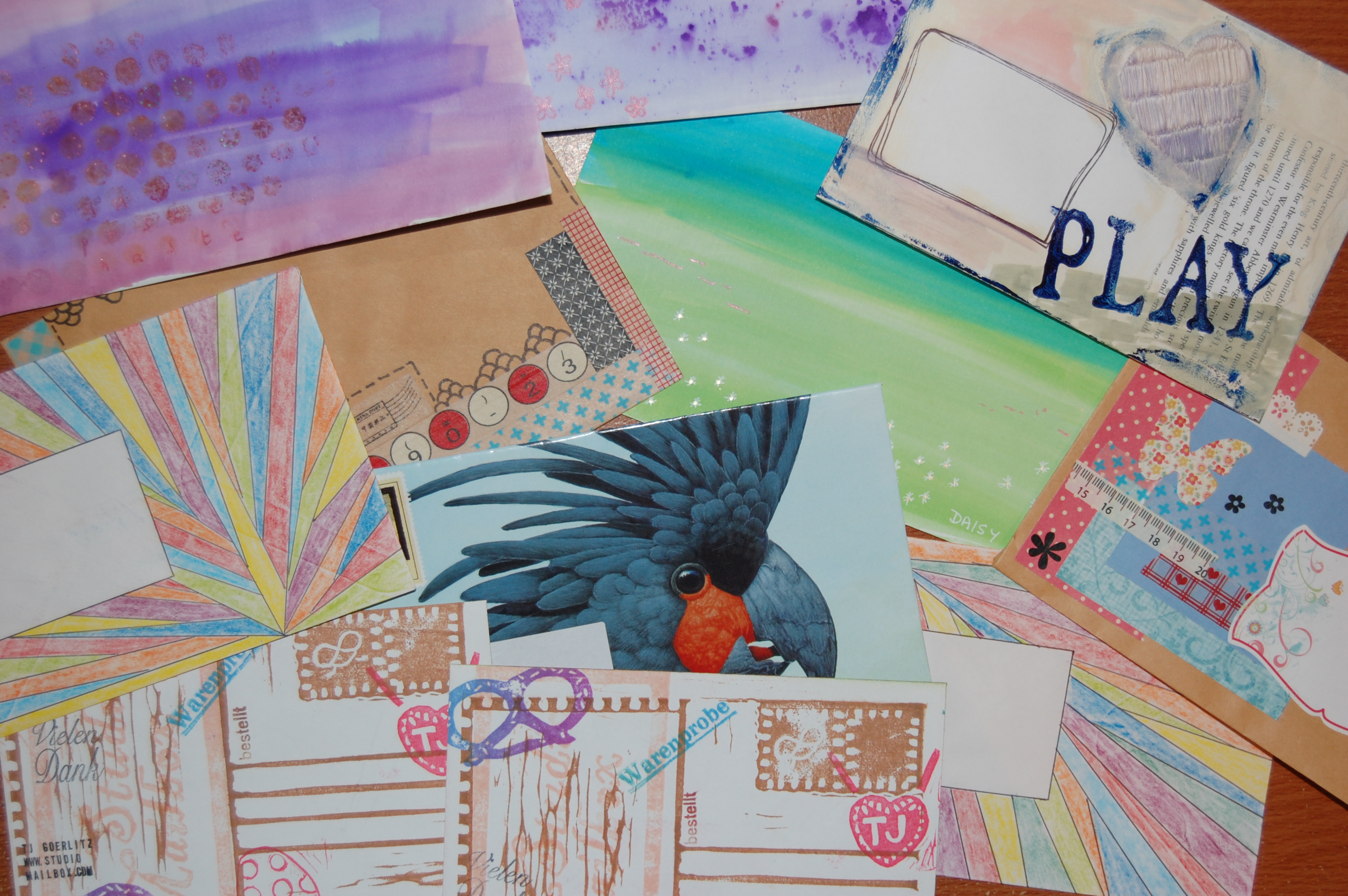 A while back I asked if anyone wanted to do an envelope swap – enough people were keen so we all got underway. It’s taken longer than I imagined but no one seems to mind. I packed up all the envelopes and they are in tomorrow’s mail back to people. I forgot to ask permission to show people’s work on my blog so here is a very general show of just some of the loveliness that arrived in my mailbox. I hope people enjoy what they receive – I loved all the work that came in. We’ll be doing it again at some stage…