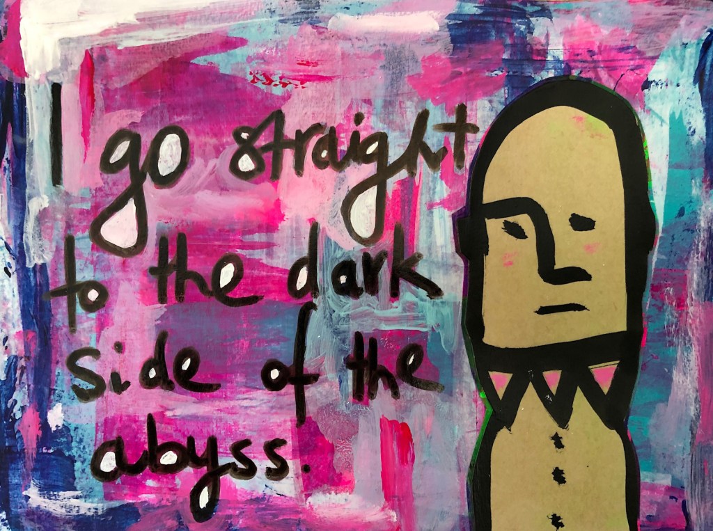 The first one I started had a background that was too dark so the text didn’t show at all. I started again and am happy with it. But, ugh, my fluro paints have gone off in their jars and they smell revolting!