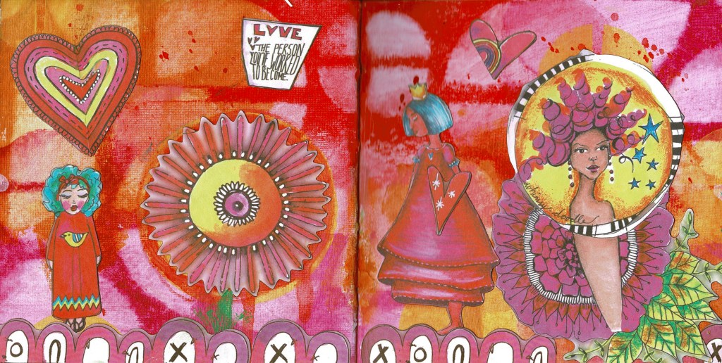 I bought a small 6×6 Dina Wakley journal partway through the year. I love the thick white watercolour pages, and will certainly buy another at some stage. The smaller format is good to work in when time is short too. I’ve only got a couple of pages left in it, so thought I’d share what I’ve been doing.