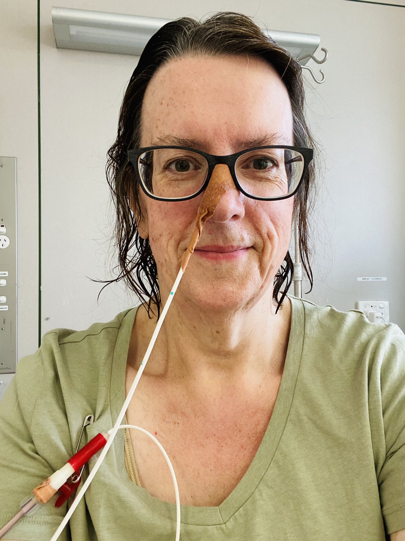 I spent a few days on IV fluids, catheter and nasal feeding tube. The feeding tube was the last to come out. I was a bit stressed about them removing it, and when I mentioned it to Mr Farrant he did it straight away, so I didn’t have time to fret. I did manage to get him to wait long enough for me to put Pink on. He laughed and said it was the first time he’d performed to music! I listen to music when they do anything like IV lines etc so I can zone out and not fuss. And boy, did I get through some IV lines…