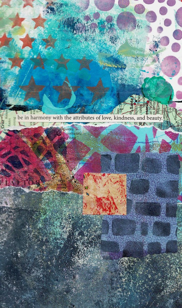 I’ve been making a small art journal of collages and adding words or phrases I’ve cut out of the book. Seeing them helps me remember his key messages, and creating art with them further develops the long term memories because, for me, art involves emotion.