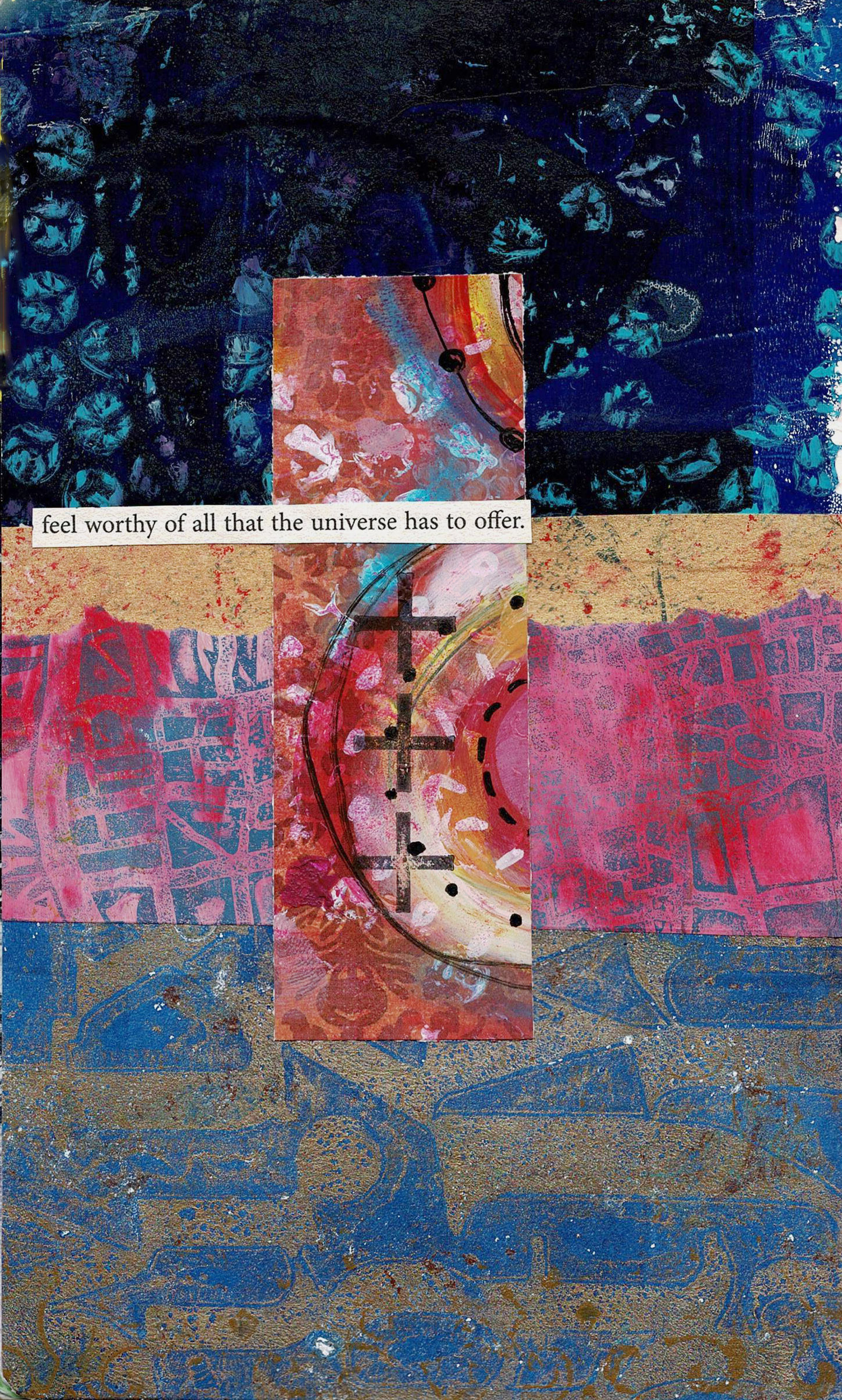 I’ve been a follower of Dr Wayne W Dyer for decades. I have his books, CDs etc. and refer to them semi regularly. A while ago I bought a withdrawn library book, The essential Wayne Dyer collection. I’ve taken out all the key messages, which I’ll handwrite into my journal; the act of writing helps build neural links. I’m gelli printing on some of the pages and I’ll use them in my art journals.