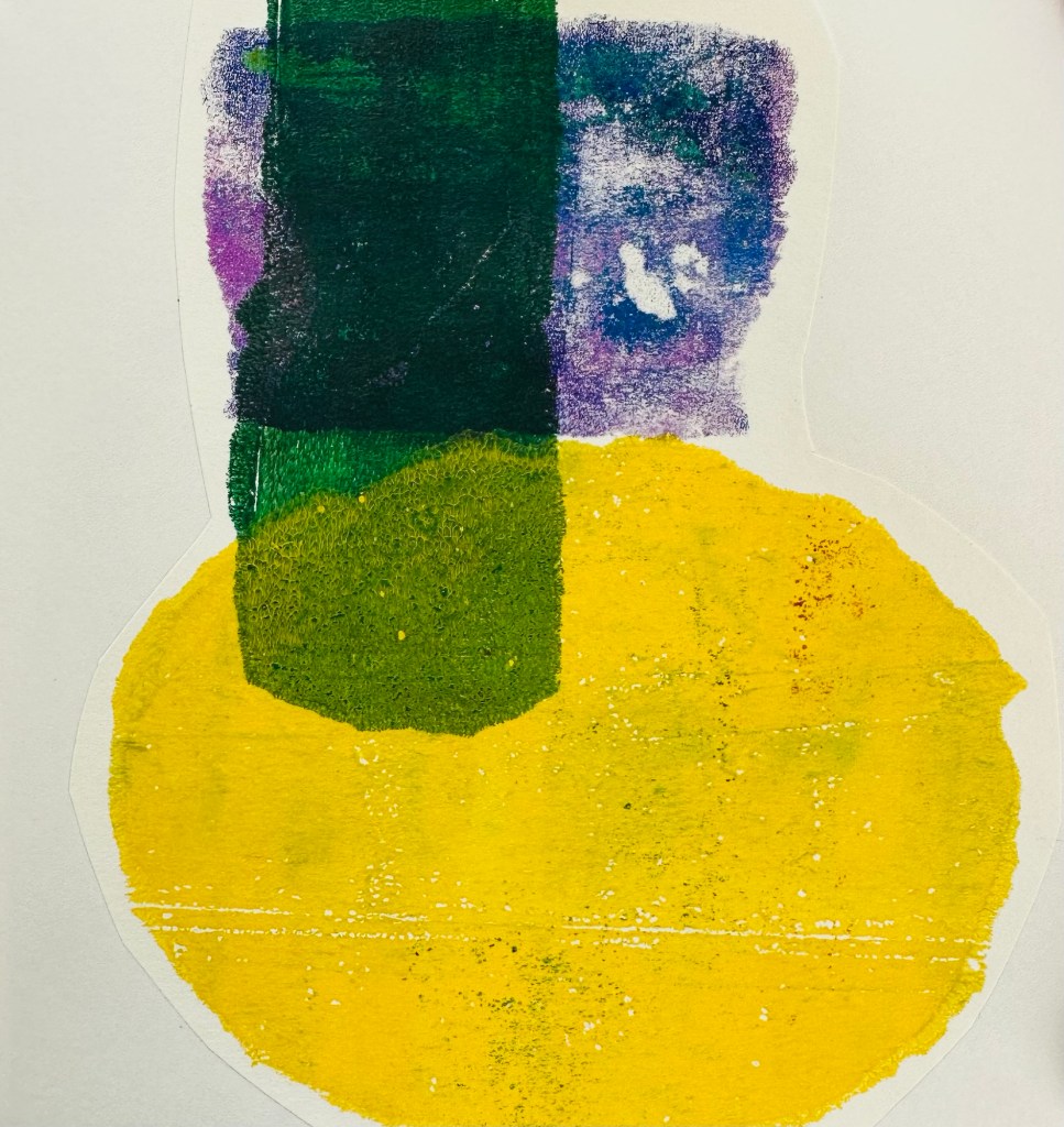The pages I removed were mainly gelli plate prompts. It looks like I was using masks to print directly onto the pages. What’s interesting is, despite being perhaps 6 years old, there’s many of the same shapes and marks I use now.