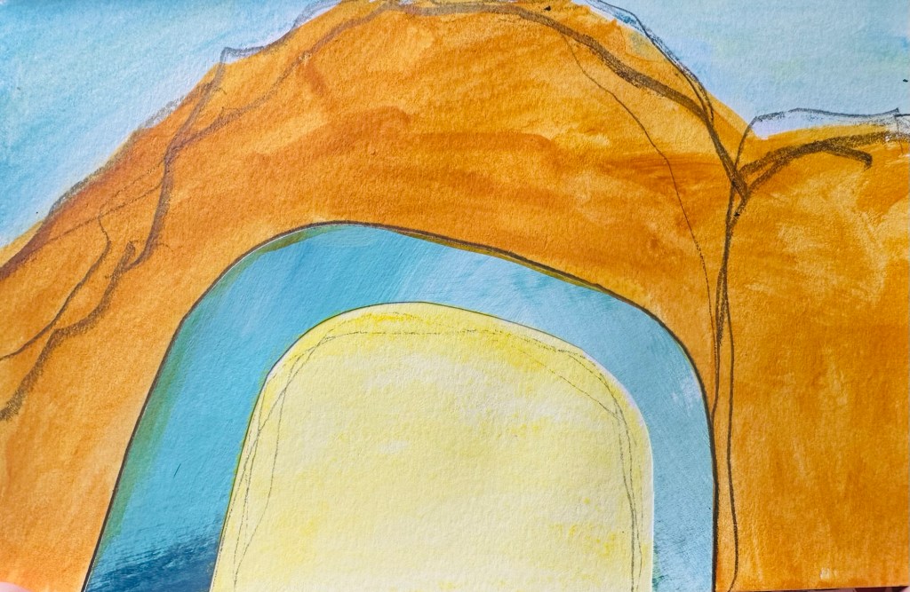 As I play in my small Fabriano art journal, with zero expectations, I can see a change happening. I’ve got the urge to complete the shapes, replicate colours and patterns. This isn’t what I normally do, so I’m going with it to see what happens. It’s most likely a step on the way to something else. It doesn’t feel like something I’d pursue in its own right.