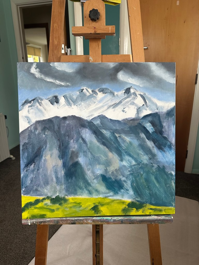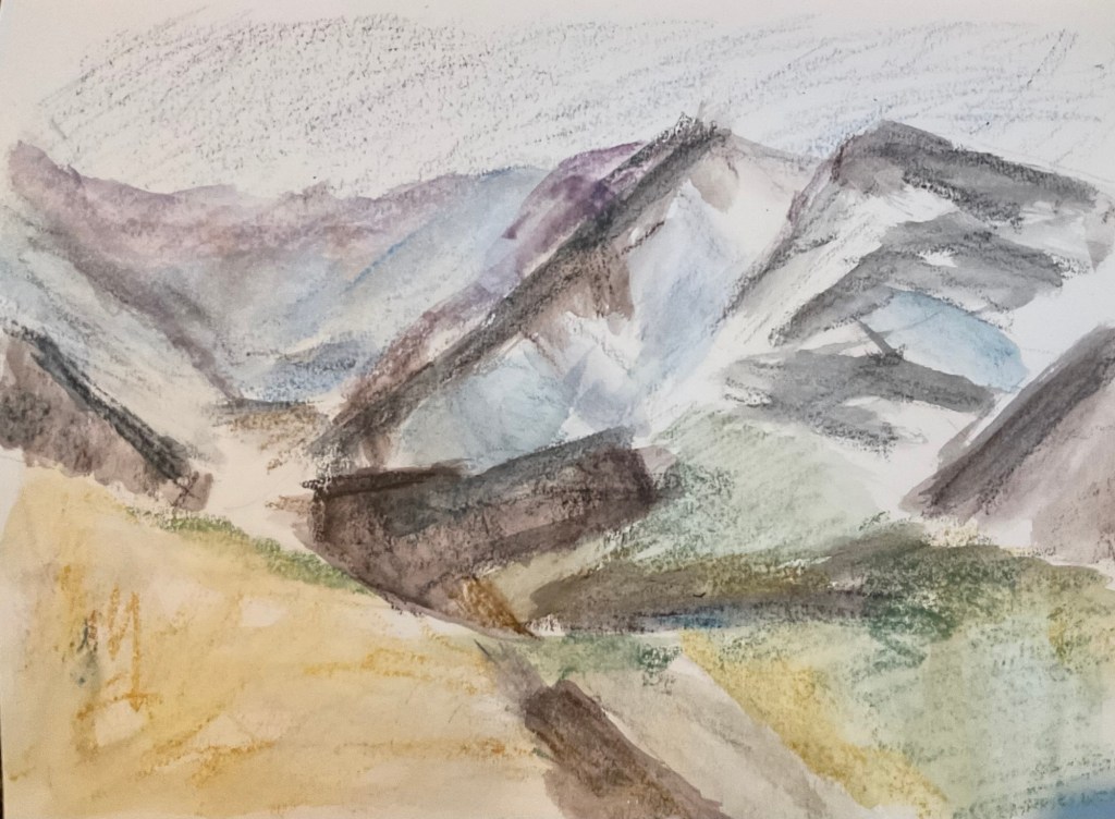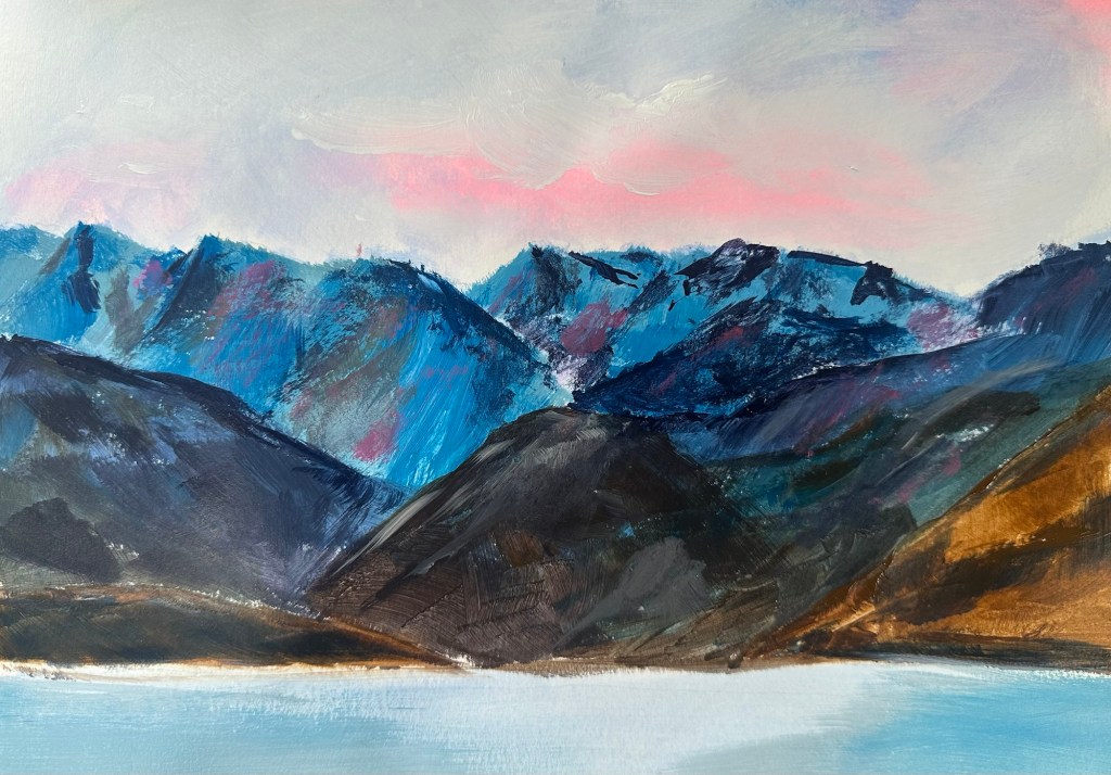 I’m looking at the landscape with no expectations about outcome: just thinking about shape, colour, light, combinations of materials. This year is about play, not outcomes. This relaxed attitude seems to be pushing me further in both directions – abstraction and realism.