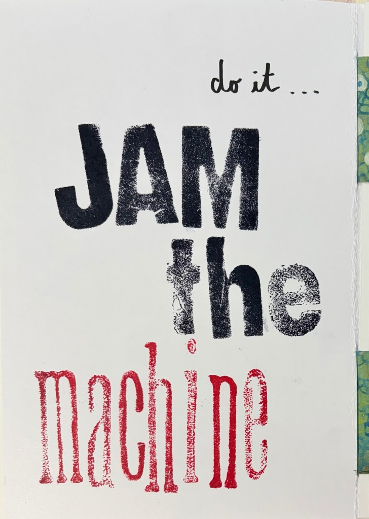 Janine Vangool’s class featured an entire sketchbook of text and typography. This appealed on a number of levels – we used to publish a newspaper, I’ve got a reasonable stash of alphabet stencils & stamps, and I’ve often used lettering in my journals.