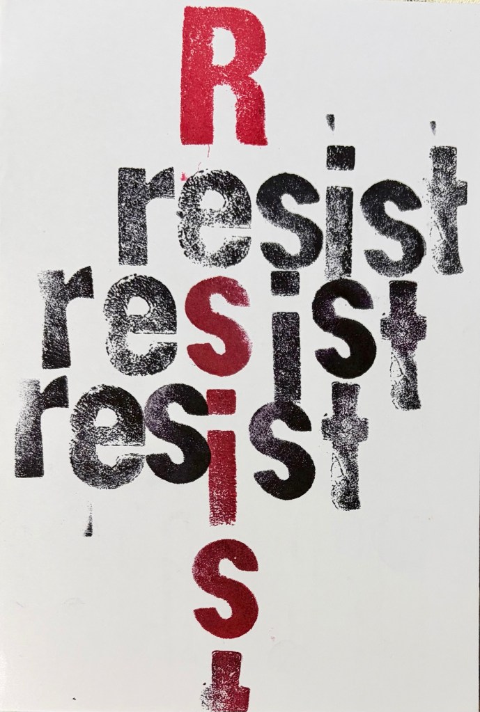 I’ve made a few pages and love them. It’s no surprise my pages focus on the state of the world. I’m going to start a fresh sketchbook and devote it to typography.