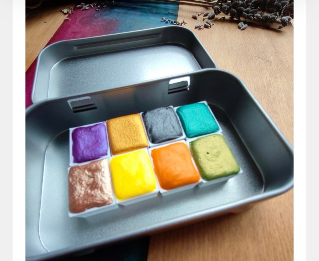 That’s all great, but what about the actual paints? Put it this way, my second set arrived today … eight colours selected by me, again in their own tin. The paints wet well, the colours are vibrant, they blend beautifully – I’m in love!