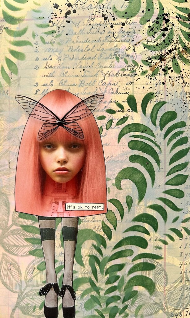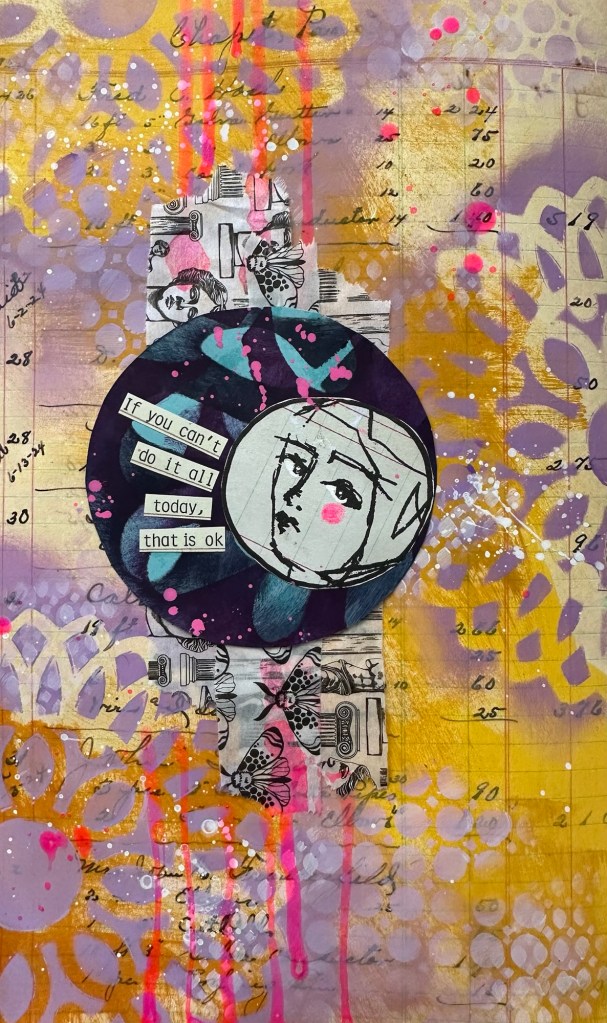 I have often said art heals. It’s good for me to create – it soothes my soul. Working regularly in my art journal lets me say in words, images and gestures all the things I can’t put into spoken words. I believe the act of creating is good for all of us, whether we’re creating art, making music, baking, gardening … there’s an outlet for anyone who will listen to their inner voice.