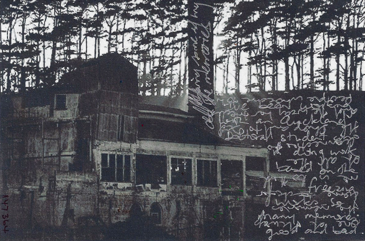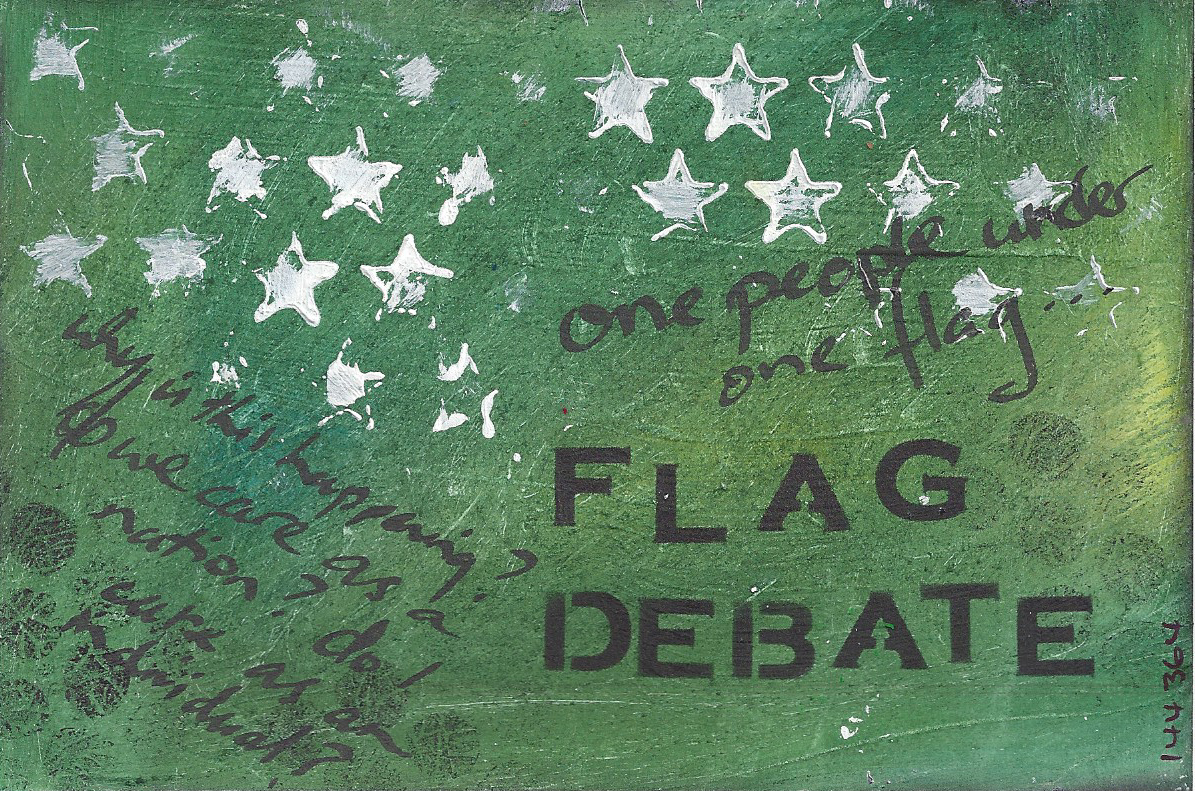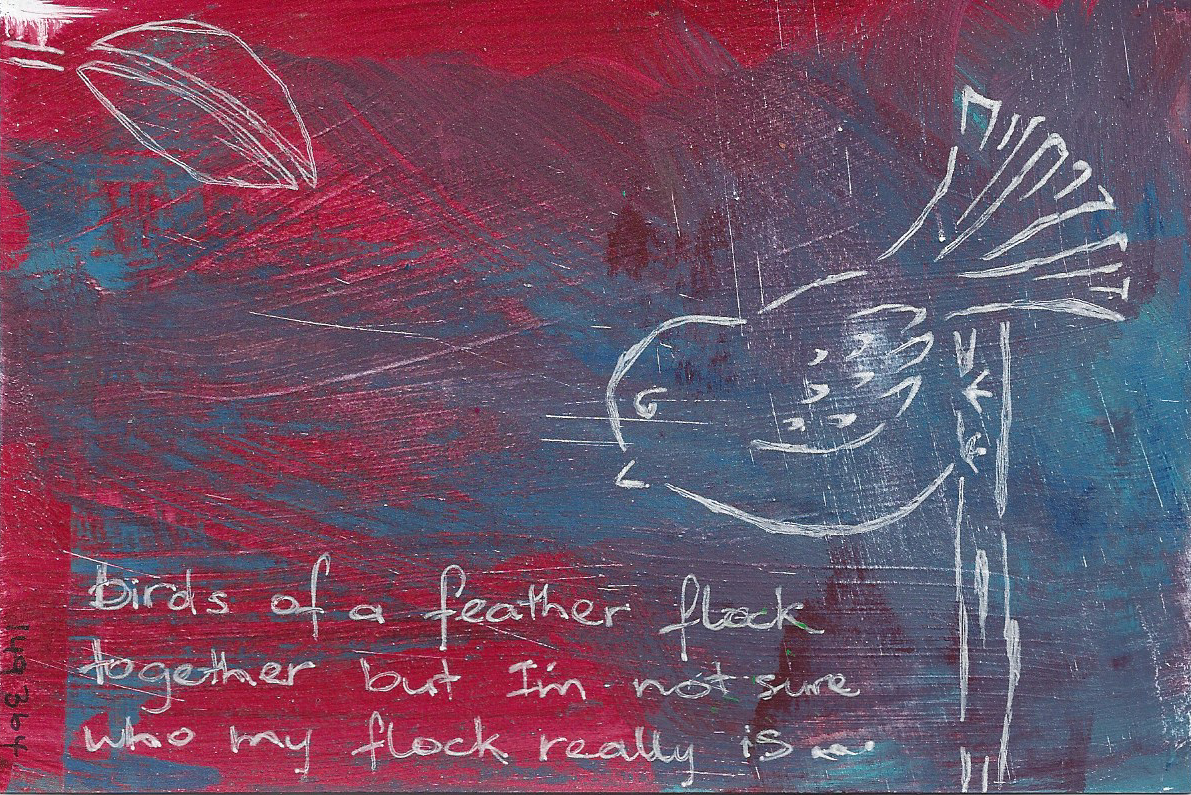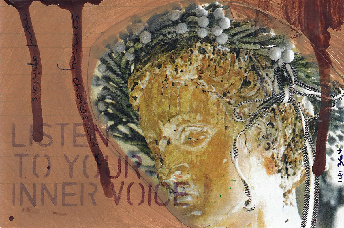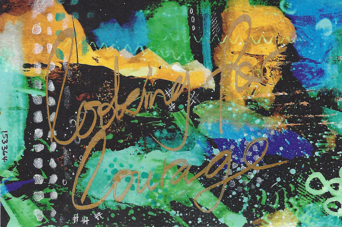 Old metal printing plate of Patea County, alcohol inks, Distress Inks, acrylic paint, Tim Holtz stencil, gesso, Kaiser Craft bits and pieces, fine bronze Golden fluid acrylic, calligraphy pen, Dyan Reaveley rubber stamps, Sharpies, printed song lyrics.