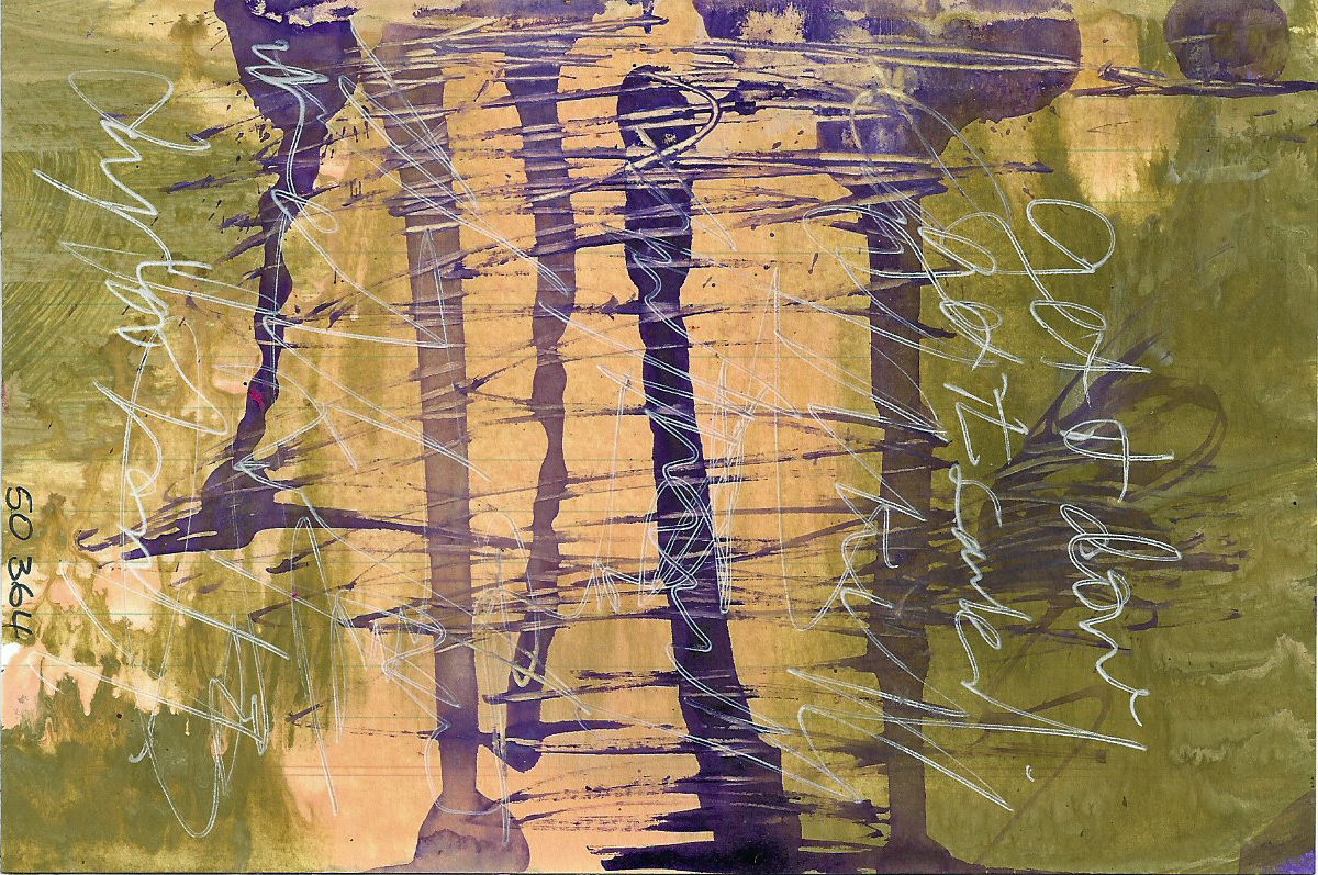 Acrylic paint, Golden high flow acrylic, gesso, calligraphy pen, fine black pen.