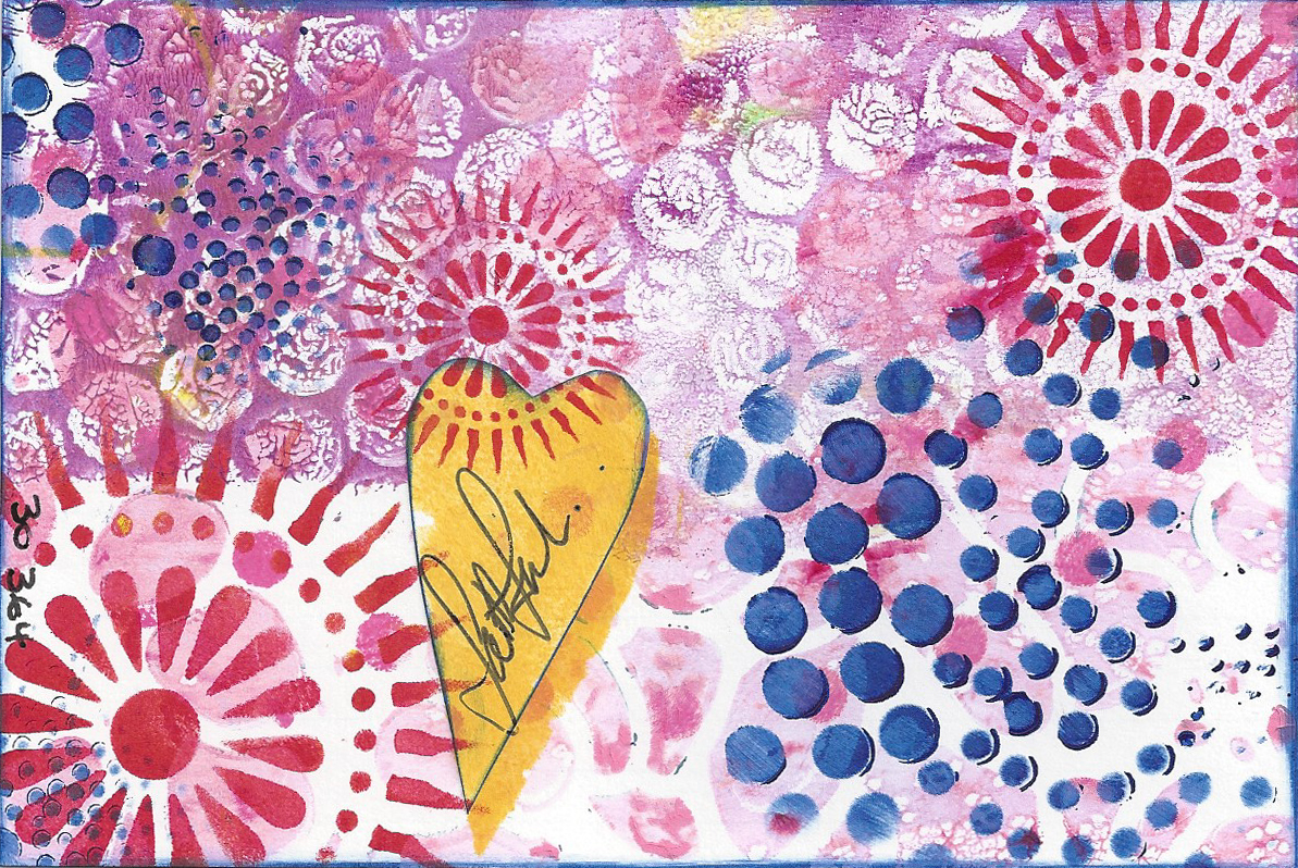 Acrylic paint. I seen to have rediscovered some of my old fav colours and ‘moves’; it feels good. This is the sort of work I was exploring in my years with The Learning Connexion. This is not a good photo in terms of colour – I cant scan it because that thick line of paint will take overnight to dry….
