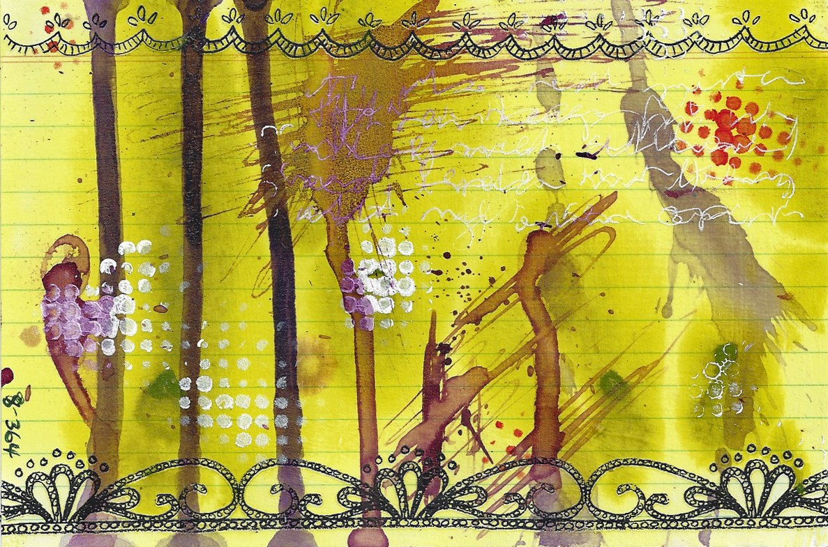 Golden High Flow acrylic, acrylic paint, fine black pen, white gel pen, gesso. if you are interested in the #IamnotCharlie reference, go to my library blog here.