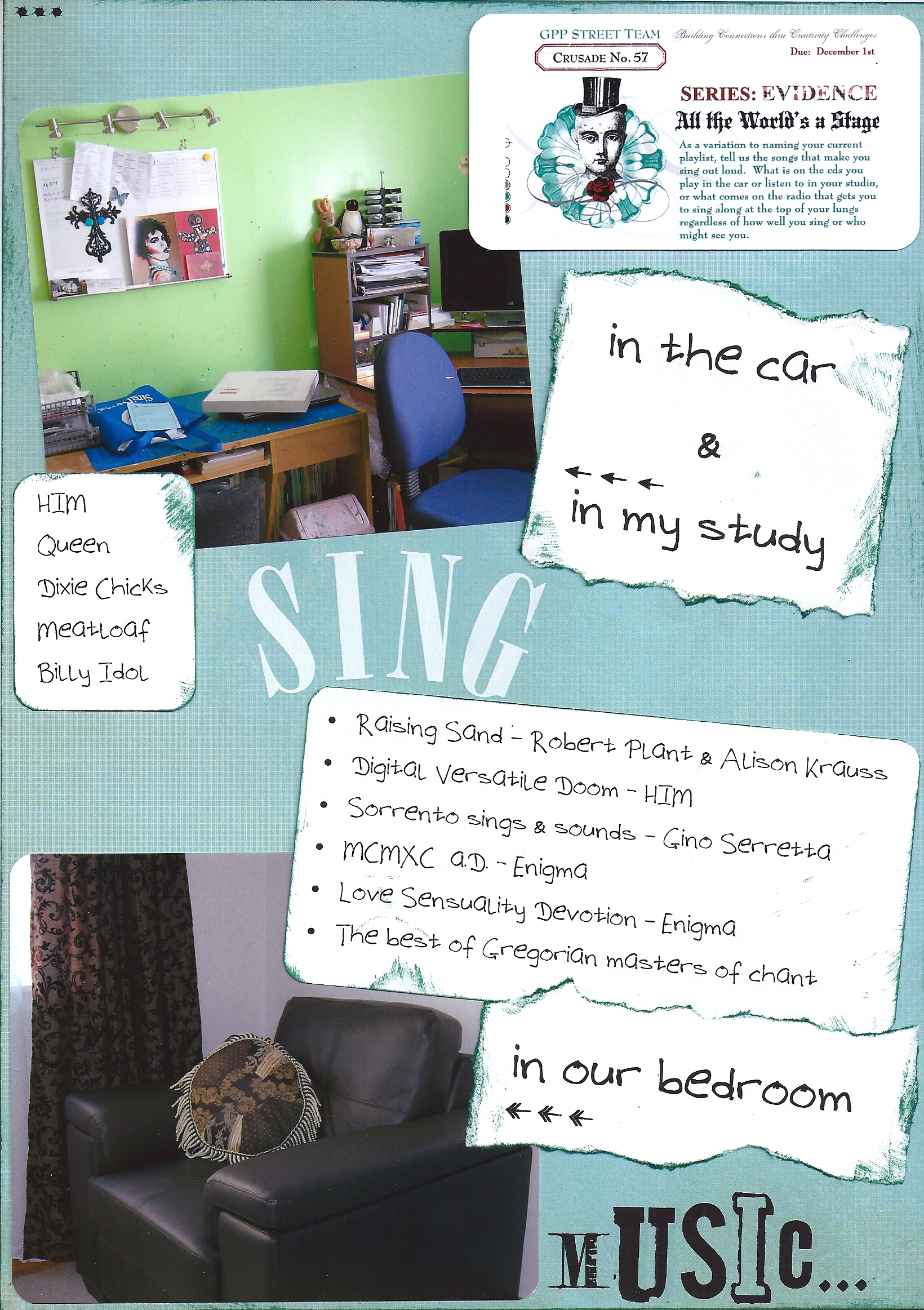 This month, over at the GPP Street Team site, Michelle asked us – what are the songs that make us sing aloud. What do we listen to in the car, the art room, wherever our music is? I tend to create art in silence unless I am using the music as part of the painting, such as painting to the tempo of a jazz piece. Other than that, silence reigns.