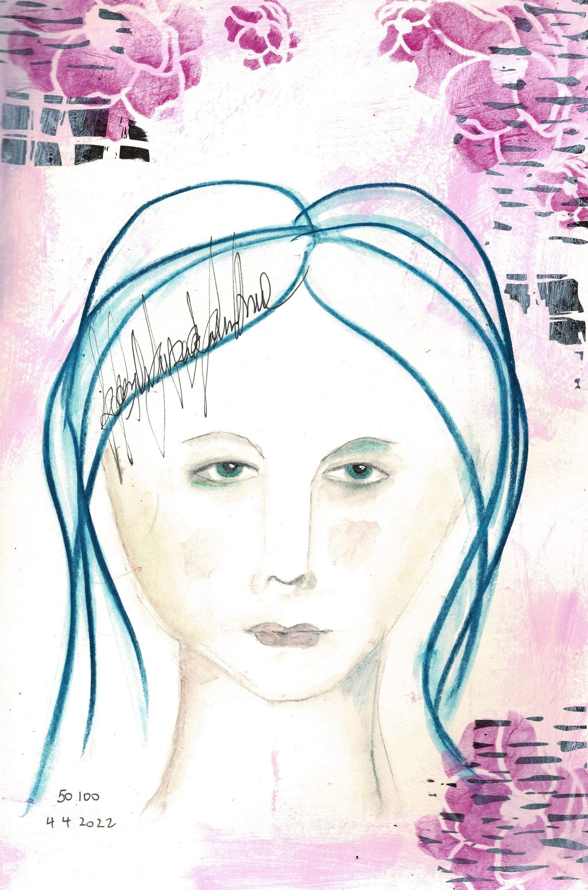 I’ve spent the afternoon at my art desk, emerging occasionally to talk with Sandra or check on the ASB Tennis with Alan. I’m working in a Dina Wakley 6×6” kraft journal. When I finish this one I think I’ll swap back to Dylusions for a bit – I feel like changing it up a bit.