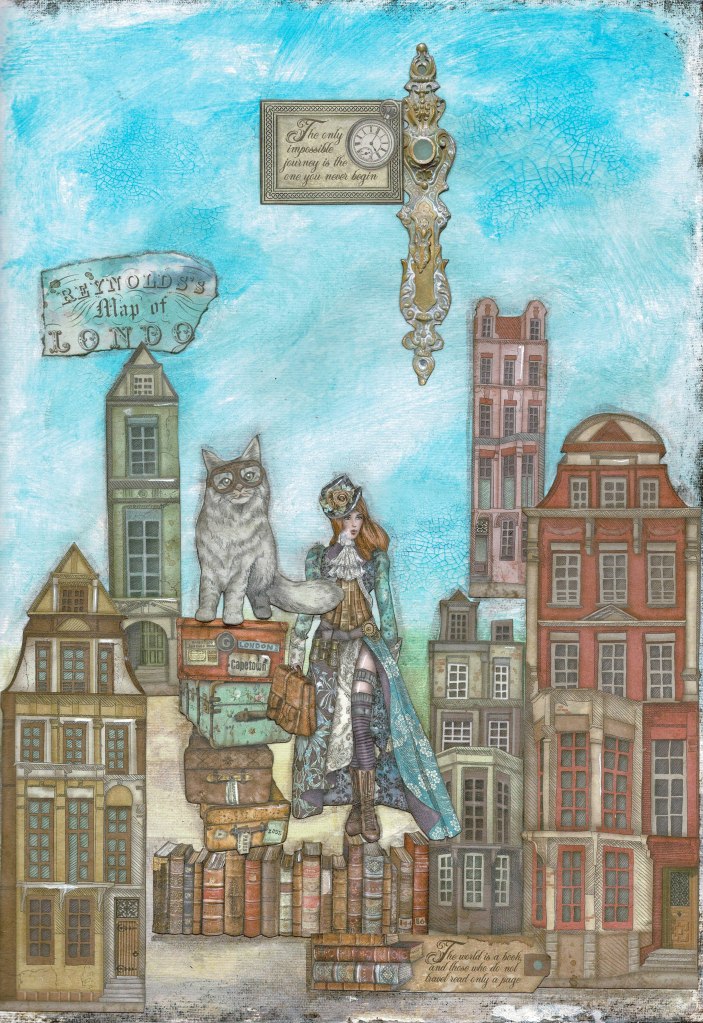 Is my art original? Yes. Am I influenced by others artists? Absolutely. There’s a core group I’ve followed for years, including Tim Holtz, Teesha Moore, Traci Bautista, Dina Wakley and Dyan Reaveley. Some of them are designers with Ranger, so I’m influenced by both their art and their new products.