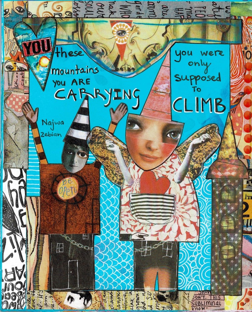 Teesha Moore, whose work I love, has been sharing some of her older art journal pages on Instagram. She’s had some health problems, so I don’t think she’s creating much at the moment. I’ve made her style of journal before, and often use her collage style in my journals.