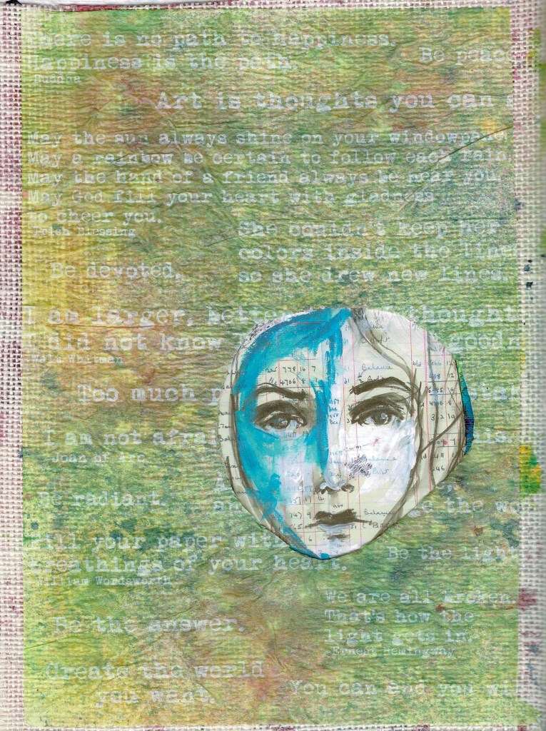 But I’m also circling back to my earliest art journal love, Tim Holtz and Distress. Sometimes I put it away for a bit, but I always come back. I just got some new paper dolls, transparent wings, and some other bits and pieces. Heaven! Thanks to Fiona at Create for having great stock.