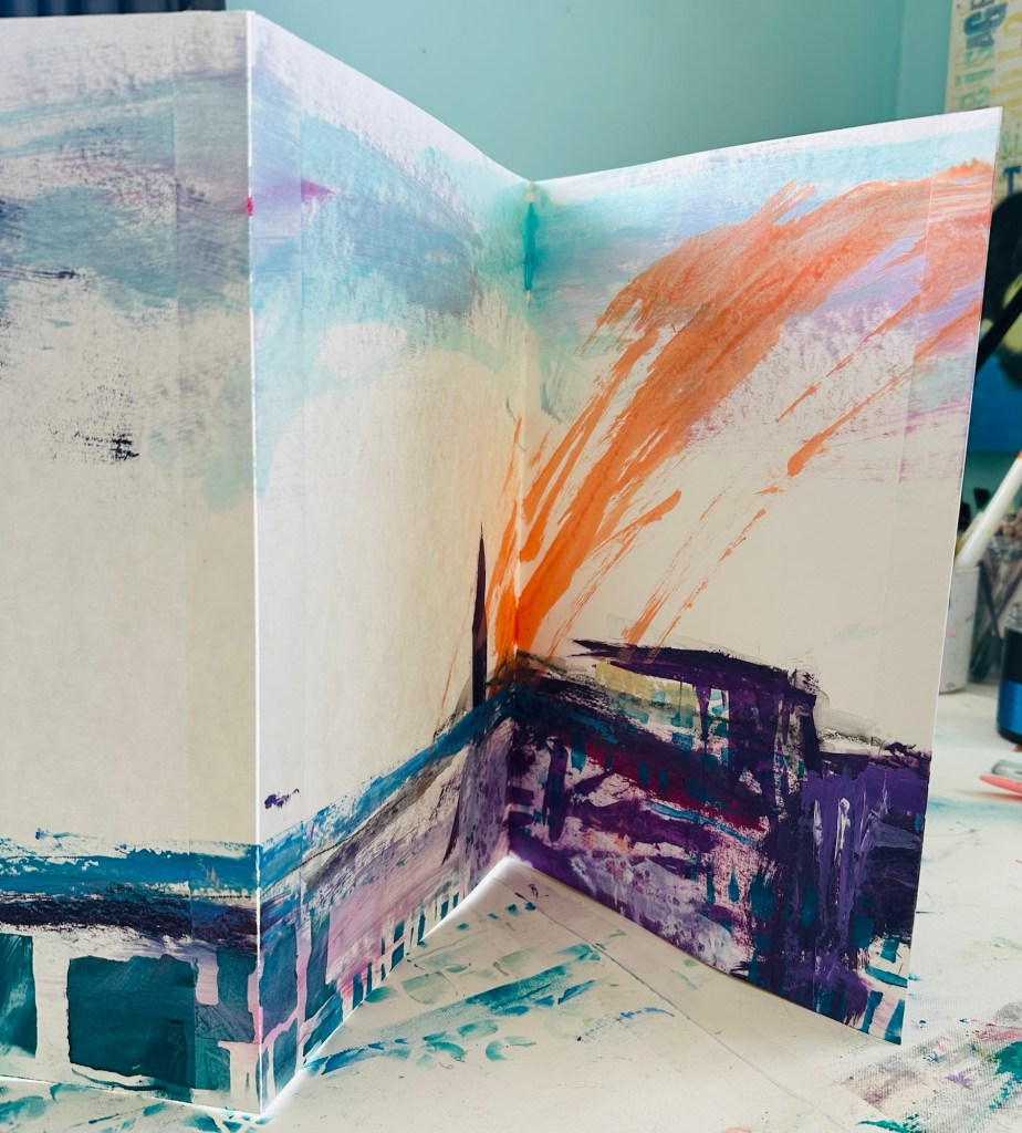 Tony passed away three weeks ago tomorrow night. Last night I decided to put together a large concertina journal using Hahnemühle Bamboo Mixed Media paper. I figured it’d probably sit around for ages, unused, but making something was a positive step.