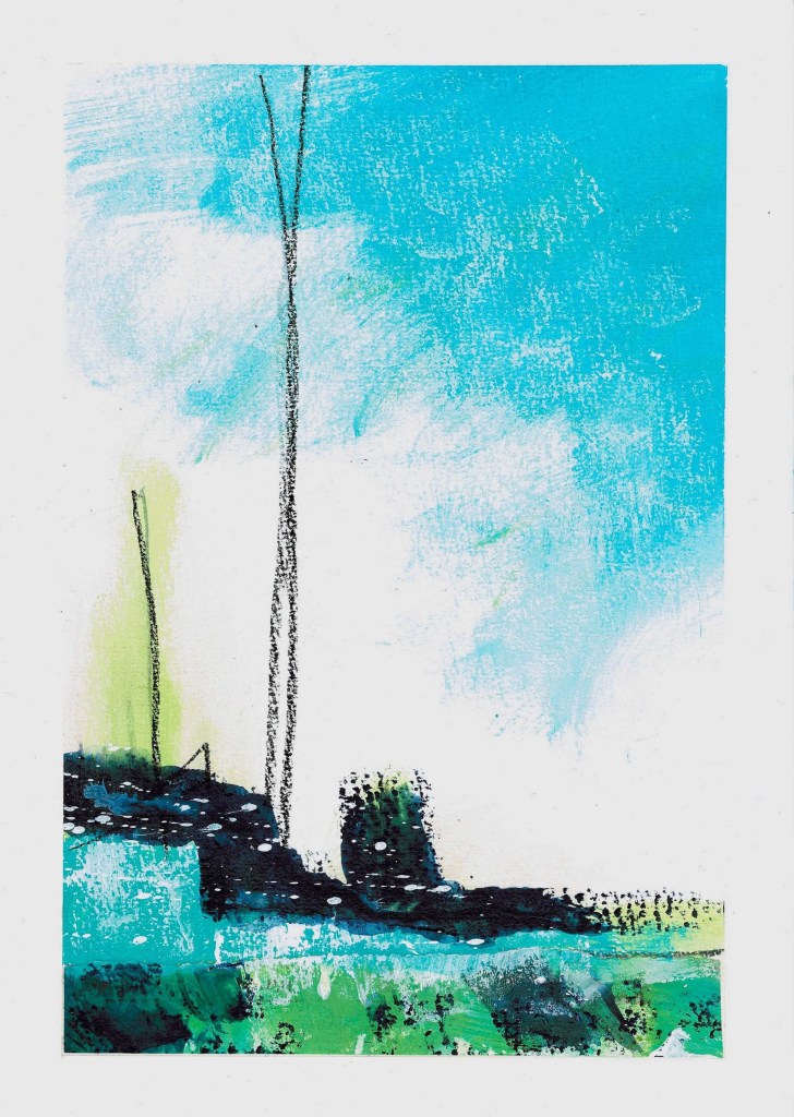 When I was sitting on Alan’s lounge floor in Hokitika contemplating the series of abstract mixed media pieces I was working on I suddenly realised I’d been loosely drawing the shape of the cool stores.