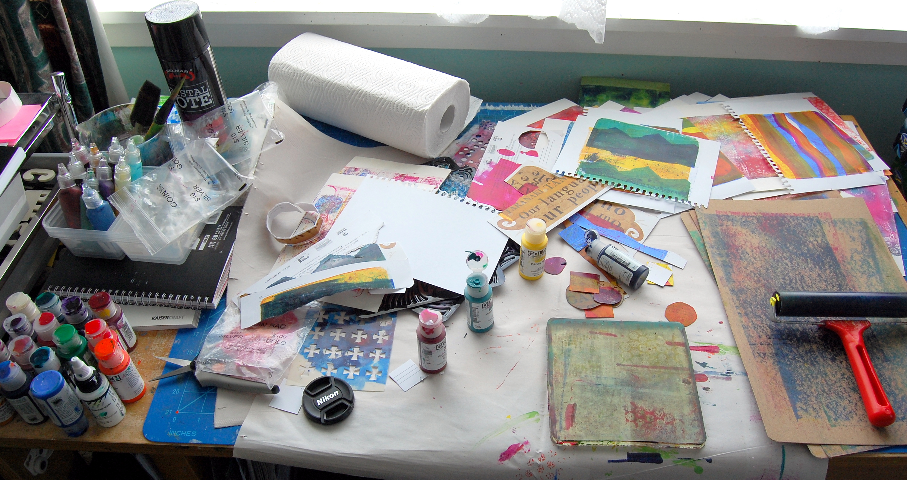 I have a couple of days leave – replacement days for working Easter – so have been creating all kids of things in amongst working on the newspaper and some other bits that I need to get done. As you can see, when I get really into creating mode my desk can get a bit overloaded. Mind you, a friend who is moving countries once her house sells just gave me a huge pile of beads and glitter, which hasn’t helped the state of chaos because I’m not sure where to store them in my stash yet! (thanks Doris – I appreciate it and will love using it all up)