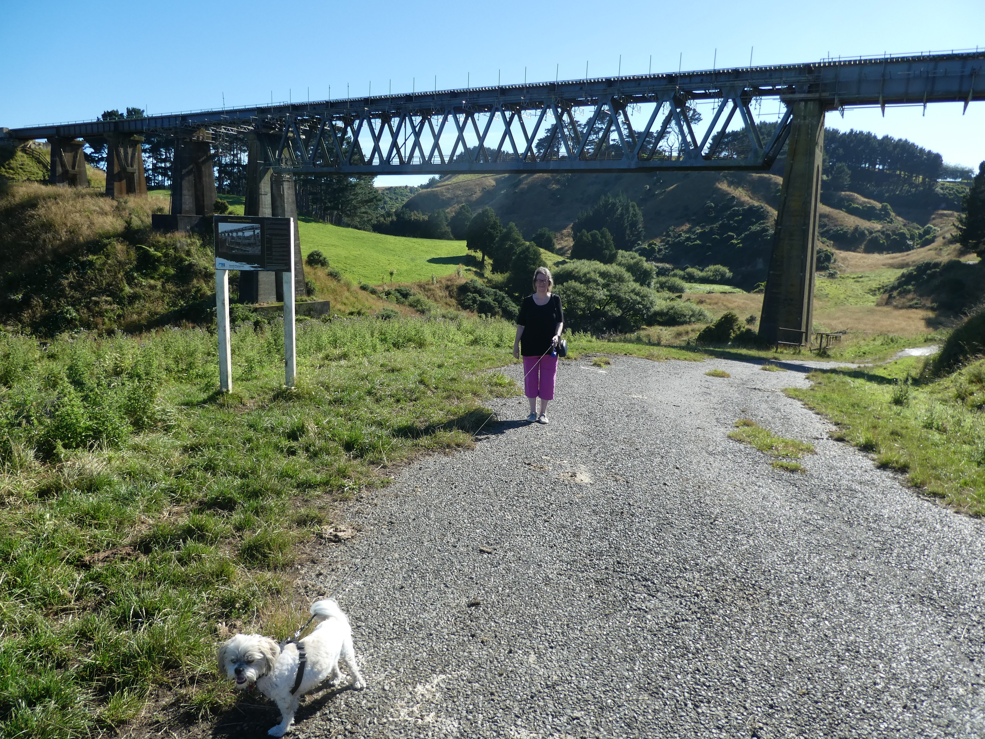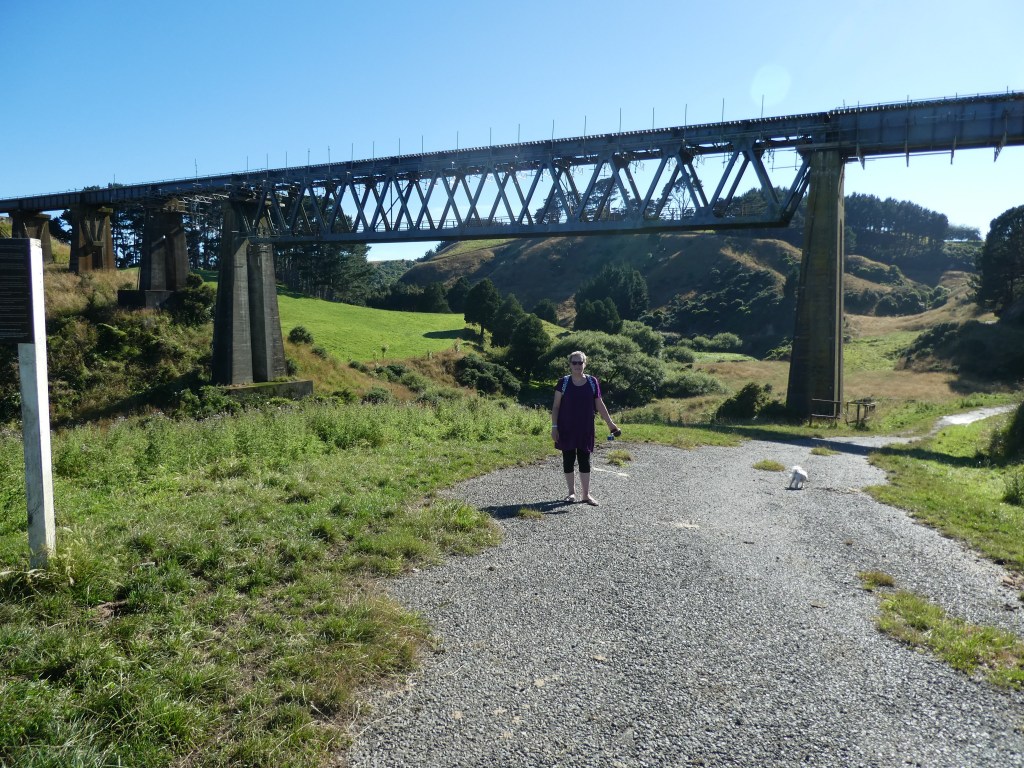 It’s 9 weeks on Thursday since my second total knee replacement. This morning my best mate took me for a walk to the Manawapou Viaduct on the old Ingahape Road. It’s a paper road no, but still largely sealed, so a relatively even surface. It’s a 2.5km round trip from the rest area at the side of SH3. The hardest part was climbing the fence at the start; the stile is missing one board at the bottom so it’s quite a step up & down for someone with two new knees 😉